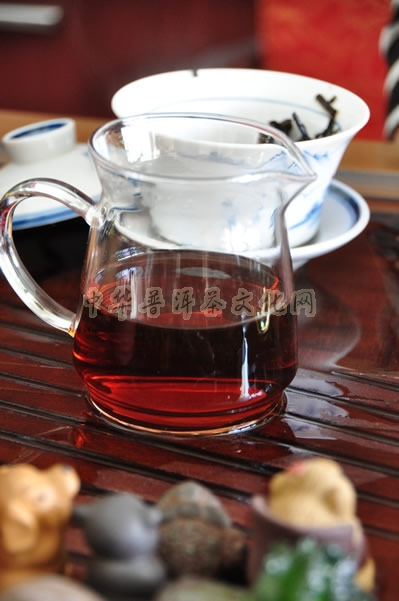 湯色:茶湯清澈透亮、呈寶石紅、粘稠泛油光