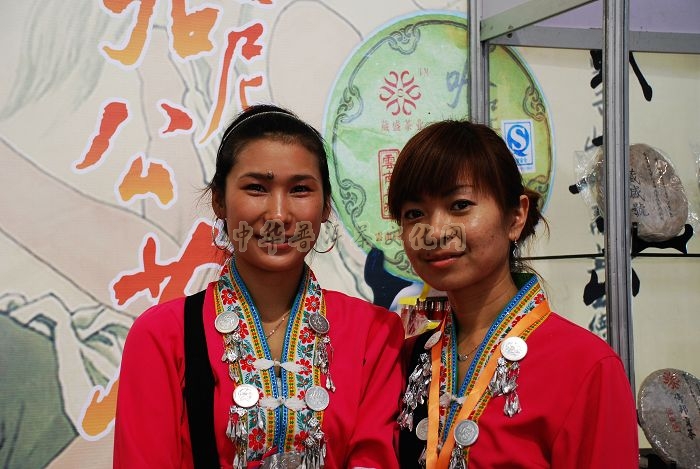 葳盛茶業(yè)在展會(huì)上展示的主打產(chǎn)品“哈尼公主系列”“德昂系列”普洱茶