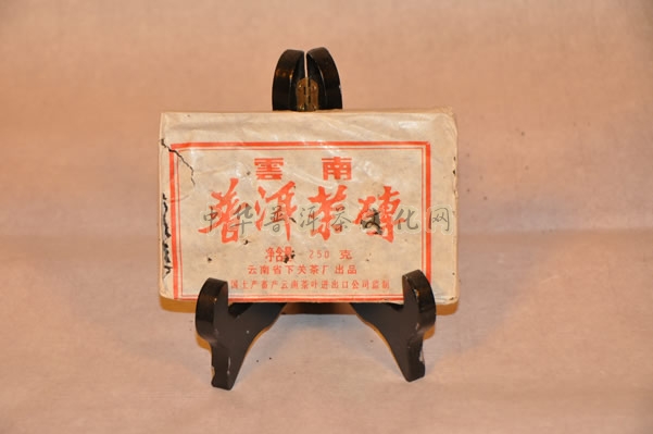特點(diǎn):該茶是由云南省下關(guān)茶廠采用傳統(tǒng)熟茶制作工藝及制茶經(jīng)驗(yàn)精制而成,重250克,長(zhǎng)14cm,寬9cm, 厚3cm ,茶磚茶面呈深褐色、色澤均勻、潔凈、茶身結(jié)實(shí)、整體磚形規(guī)矩,底部有特用銅模壓制的24個(gè)乳釘,湯色紅濃剔透,滋味醇厚回甘。