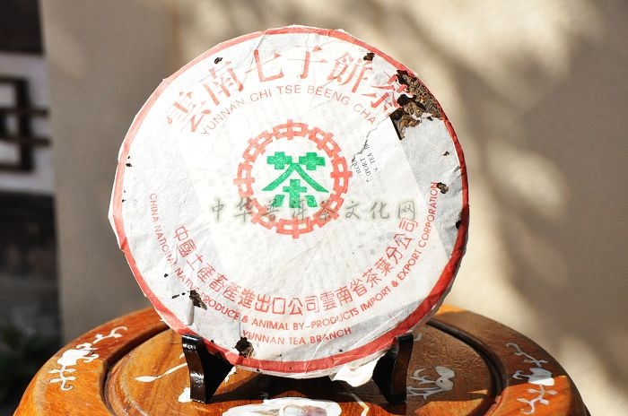 特點(diǎn):該茶產(chǎn)于97年,由勐海茶廠生產(chǎn),采用4級大葉種曬青毛茶壓制而成,傣文內(nèi)飛大量出現(xiàn)于97、98年之后,內(nèi)飛右下角有傣文內(nèi)飛。根據(jù)老師傅介紹,此款茶原一直藏于勐海茶廠倉庫中,由于2004年10月勐海茶廠改制,茶廠內(nèi)的人稱之為“最后的奉獻(xiàn)”, 湯色呈黃中帶紅,透,亮。香氣沉穩(wěn),茶氣十足,2泡過后就明顯感覺茶氣,讓人十分震撼。先從口腔直入胃中,一條水路非常明顯順流直下,舌頭稍有收斂,然后慢慢化開,茶香在口腔中留存高,回甘好。