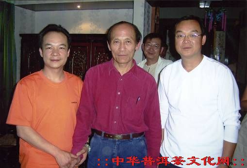 臺灣茶人鄧時(shí)海先生(中)與《中華普洱茶文化百科》作者交流普洱茶文化